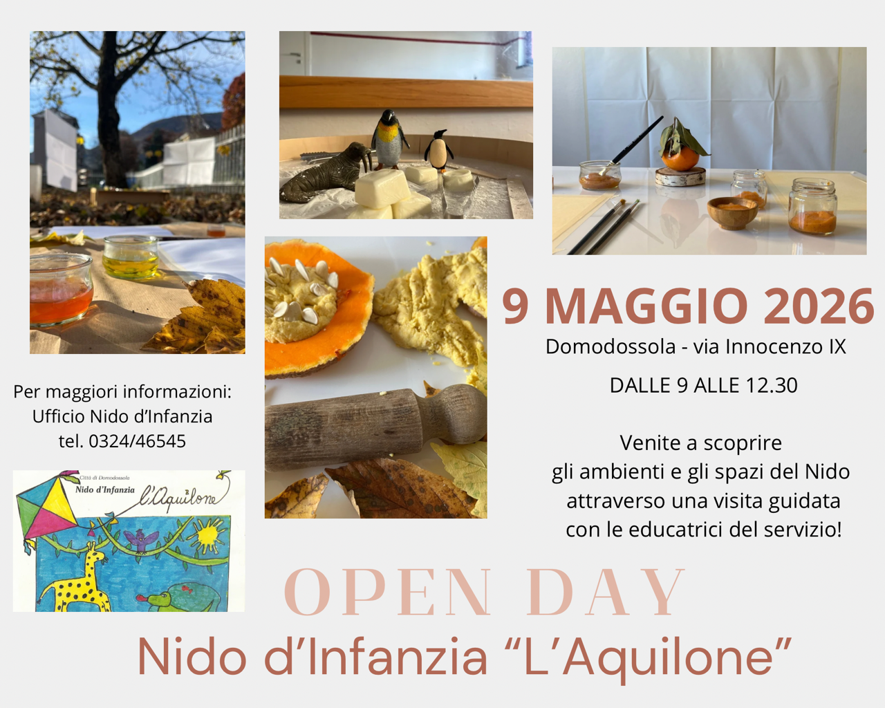 Il nido d’infanzia l’Aquilone, sito in via Innocenzo IX n. 24, potrà essere visitato sabato 9 maggio 2026 dalle ore 09.00 alle ore 12.30.